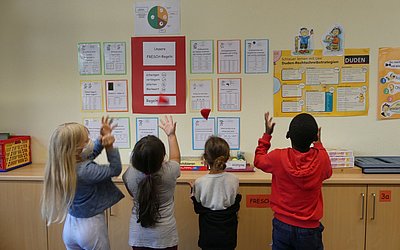 Mit unseren Förderangeboten verfolgen wir das Ziel, die Schüler*innen zu stärken und zu unterstützen. Diese Angebote finden in kleinen Gruppen zu je 6 Kindern statt. Neben der Stärkung des Selbstbewusstseins, versuchen wir Grundlagen zu festigen und das Lernen ganzheitlich zu unterstützen. Dieses Angebot gilt für Mathematik (Matheland) und Deutsch (FReSch). Eine Besonderheit ist das „Bewegte Lernen“. Ziel dieser Förderung ist es, die Kinder über das Medium Bewegung in ihrer gesamten Entwicklung zu unterstützen.