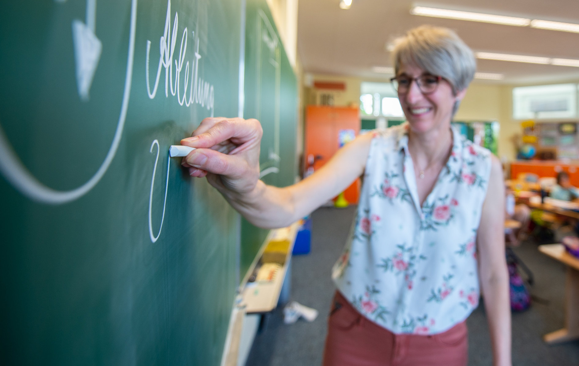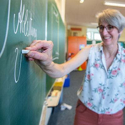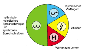 Der Lese- und Schreibvorgang wird an unserer Schule nach der Silbenmethode der Freiburger Rechtschreibschule (FReSch) vermittelt. Im Mittelpunkt steht dabei immer die Silbe. Die Deutsche Sprache ist eine syllabische Sprache, sowohl im Klang als auch in der Schrift. Dies wird in der Sprachdidaktik durch Bewegungen unterstützt und kann so für die Orthografie gut genutzt werden. Die Schüler*innen lernen mit farbigen Silbentrennern lesen, richtiges Schreiben mit zwei Farben, mit Hilfe von Rhythmusübungen und Häuschenschreibweise. Eine Brücke zwischen Buchstaben und Laut ist die Einübung von Gebärden zur zusätzlichen Sicherung.